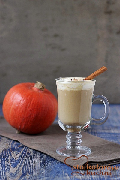 Mleko podgrzewamy z przyprawami. Dodajemy puree, mieszamy i zagotowujemy (jeżeli lubimy słodzoną kawę, dodajemy też cukier). Gorące mleko przelewamy do szklanek. Dolewamy świeżo zaparzoną kawę. Możemy udekorować bitą śmietaną i posypać cynamonem lub przyprawą.